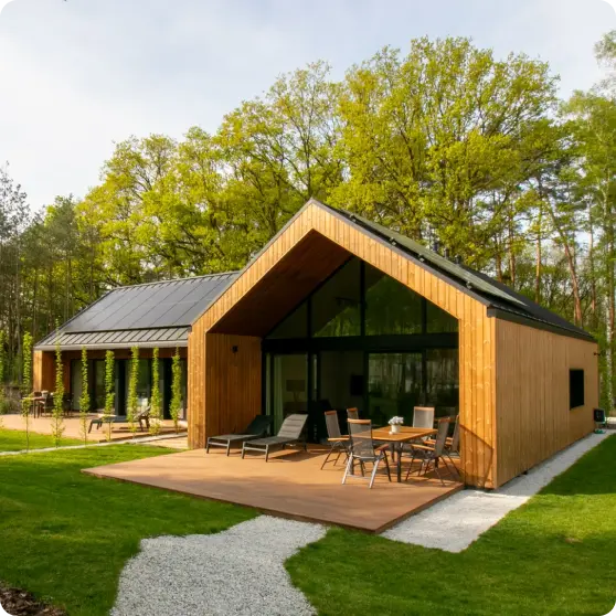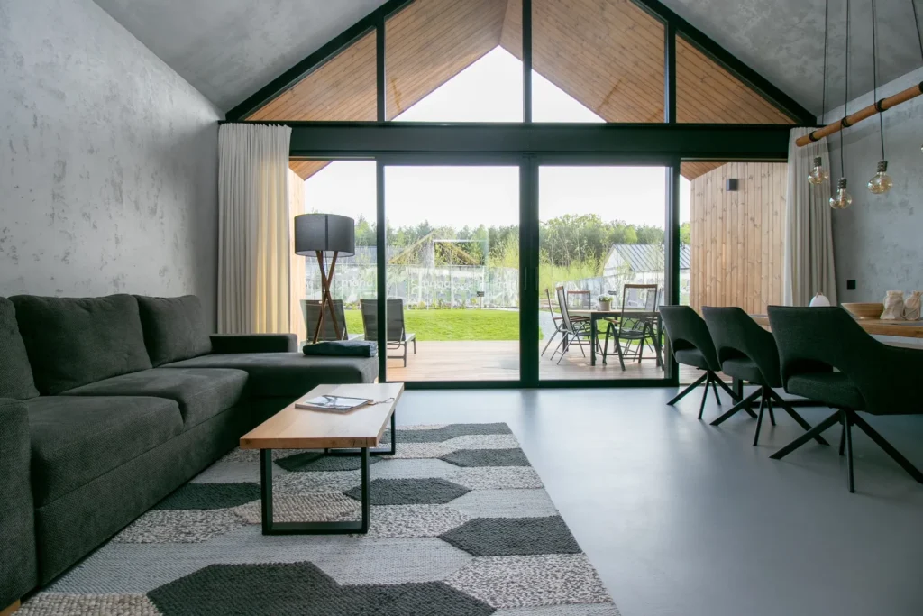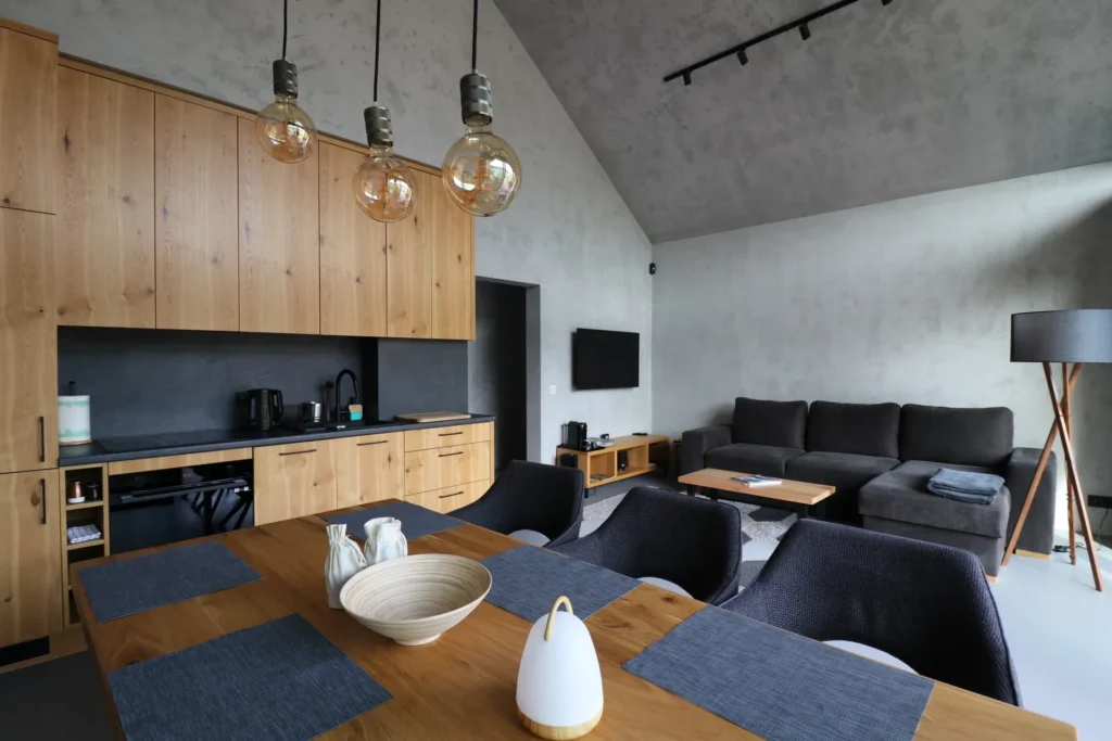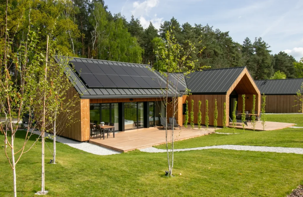 🏡 Luksusowe domki z widokiem na jezioro – przestronne, urządzone w naturalnym stylu, pełne komfortu i ciepła.