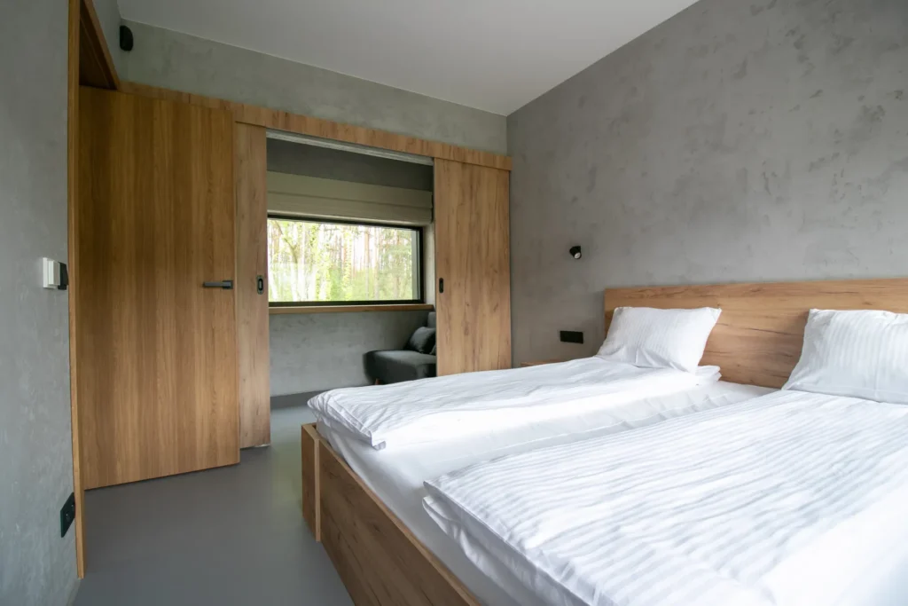 • Domki 4-osobowe z 2 sypialniami, salonem, łazienką i aneksem kuchennym.
